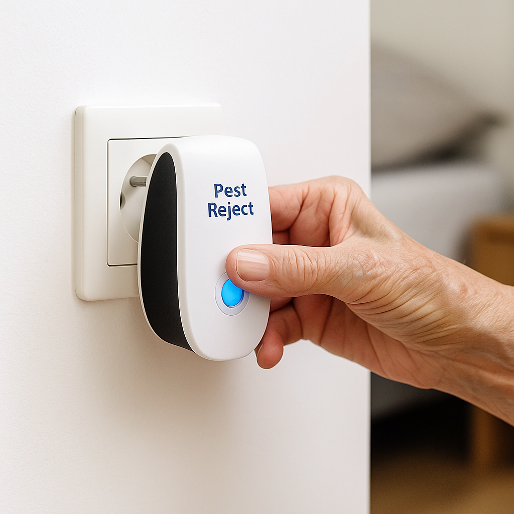 Aucune installation compliquée. Branchez simplement Pest Reject sur une prise murale dans votre chambre. C'est tout. Il commence à travailler immédiatement.